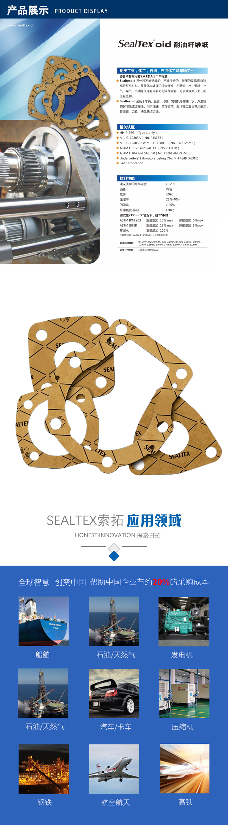 上海索拓密封材料有限公司長期致力于適用于各行業的密封墊、無石棉墊片、環保墊片和耐高溫隔熱產品的生產、加工及銷售